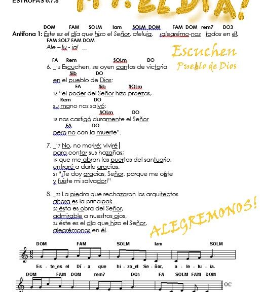 En la gran fiesta del pueblo de Dios, celebramos la liberación que El nos ha dado. El servidor de Dios, Jesús, habiendo parecido y muerto en la cruz, vive y reina para siempre. Hoy, Cristo resucitado, junto con su Iglesia, canta su acción de gracias pascual por este día que hizo el Señor. ¡Alegrémonos y cantemos, porque es eterno su amor!